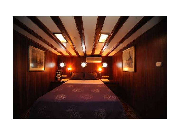 Prenses Lila Gulet is a 36.00 m. meters wooden crewed yacht which launched in 2003. She designed for luxury private crewed yacht charters with modern and large cabins, saloon and deck. , 6 double cabins, 2 twin cabin with 2 single beds is offering spacious accommodation up to 16 people. In each cabin, including seperately placed shower unit, it has its own private shower and toilet. All the yacht, including the cabins are air-conditioned. Gulet Prenses Lila has all the amenities and the elegance of an exclusive yacht. The accent is on a comfortable and elegant atmosphere created through a high woodwork quality and an intelligent design. It has a dining table, a fully equipped separate kitchen and an open/closed dining room and an air-conditioned saloon. When you sail or reach the shore, the sun beds spread out on the deck will offer you an excellent opportunity to sunbathe and relax.