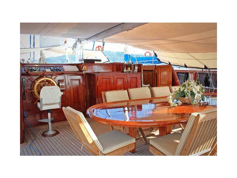 M/S Yuce Bey, is specially designed to give splenadid pleasure to choosy yacht renters and to offer a relaxing athmosphere of to cruise in Turkey and Greek Islands. Gulet Yuce Bey is one of the most perfect examples of the Turkish wooden gulets and an excellent charter choice for a perfect blue voyage vacation. Enjoy the sea with the comfort of your home. Yuce Bey Gulet is a 23.90 m. meters wooden crewed yacht which launched in 2006. She designed for luxury private crewed yacht charters with modern and large cabins, saloon and deck. 1 master cabin with french bed, 2 double cabins, 2 twin cabin with 2 single beds is offering spacious accommodation up to 10 people. In each cabin, including seperately placed shower unit, it has its own private shower and toilet. All the yacht, including the cabins are air-conditioned.